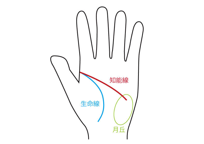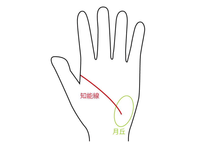 知能線が、「月丘上部に向かう(特に:生命線から出ている)」「終点が第二火星丘にある(特に:まっすぐで濃い場合)」「中指と薬指の間まである」という手相の方が、これに当てはまります。