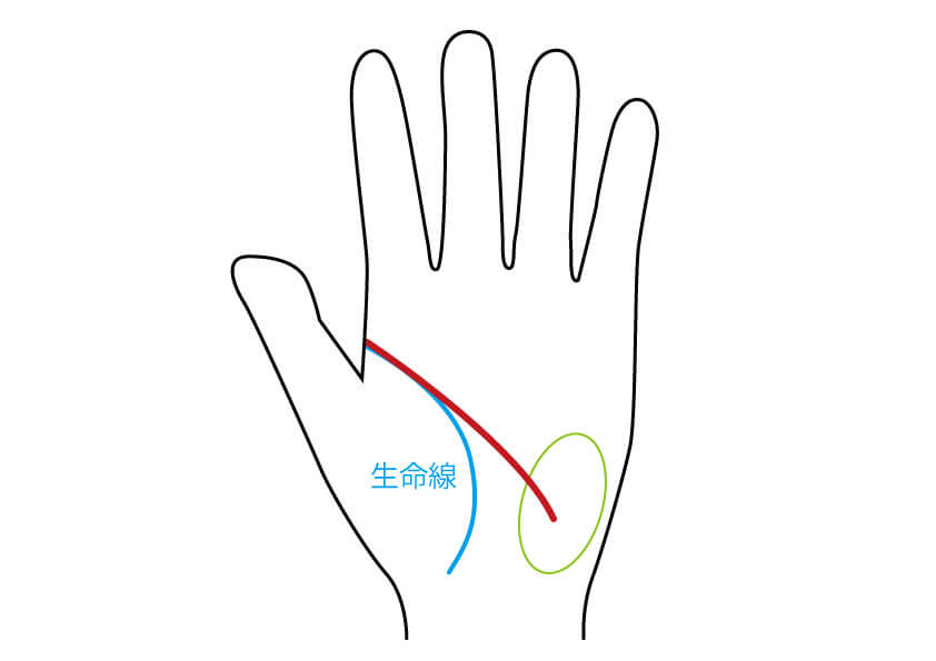 知能線が、「末端に、下部に短い平行線がある」「始点が、第一火星丘の中にある」「始点が、生命線の途中にある」という手相の方が、これに当てはまります。