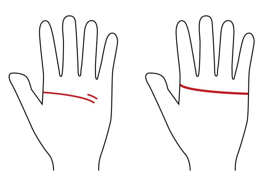 知能線が、「感情線・生命線と共に、同じ場所から出る」「中指と薬指の間を通り越し、かなり長い線となっている」「曲線だが、短い」という手相の方が、これに当てはまります。