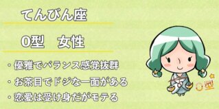 | てんびん座 女性 O型 | てんびん座 男性 O型 |
