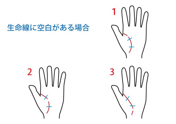 生命線に空白がある場合(生命線を3等分して考えます)