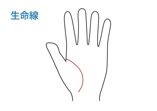 生命線のカーブが途中まで張り出している(生命線を3等分して考えます)