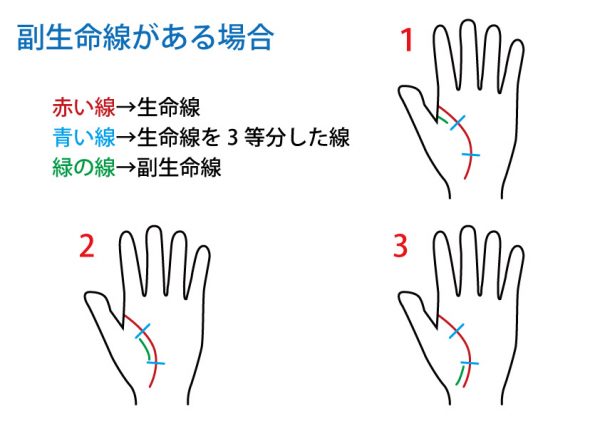 副生命線がある場所(生命線を3等分して考えます)