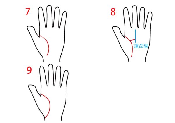 8:短くてもよいので、運命線につながる線がある