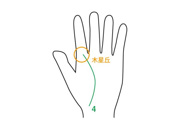 4:3よりも上の場所で、木星丘(人差し指の付け根)から出ている