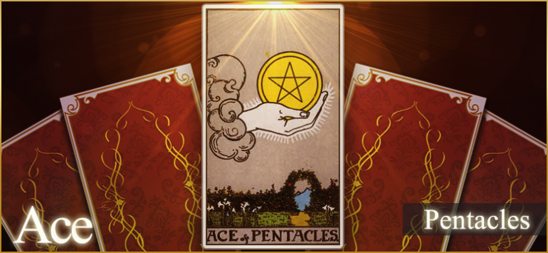 エースの持つエネルギーの集約という意味であるペンタクルのエースの正位置は「物質的満足」「満足する成果」「地位の安定」「繁栄の基盤」「金銭や富」といったキーワードとなります。
