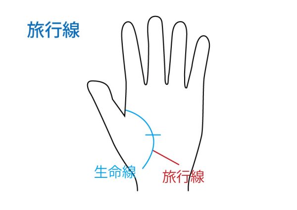旅行線は、その名の通り「旅行」に関することを司る運です。家族や友達、恋人と行くプライベートな旅行はもちろん、仕事での出張・転勤などのことも占うことができます。また、生まれ育った土地とは別の土地で暮らしていくかどうかも分かります。