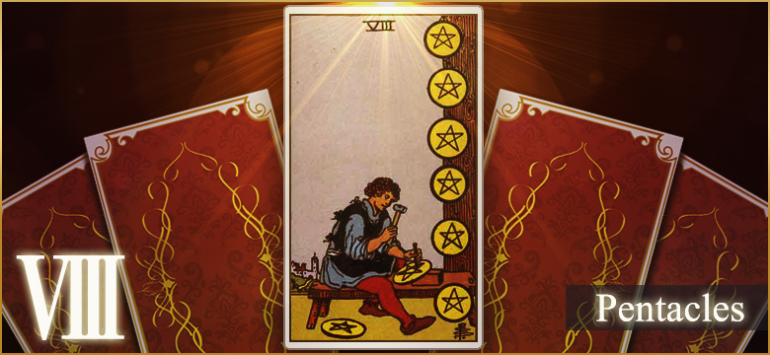 ペンタクルの8の正位置は、見習いから入り地味であってもきちんと努力することで大きな成果が約束されます。