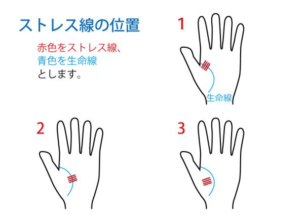 ストレス線は、その人の心のストレスを司ります。線の状態により、どれくらい疲れているのか、どんな対処をすればよいのか、ということを紐解くことができます。