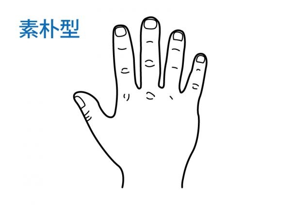 素朴型は、肉がしっかりとついた、ずっしりとした印象の手です。指にも肉がついているので、指が太く大きく見えることが多いです。