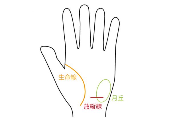 放縦線とは、「始点が月丘(小指の真下で、手首の近くのふくらみ)にあり、生命線に向かっている線」のことを指します。