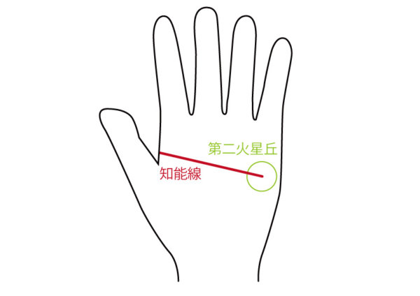 知能線は人差し指側から出る線なので、第二火星丘とは対極の場所にあります。その分、知能線自体が長くなるので目立ちやすく、比較的見つけやすいですよ。