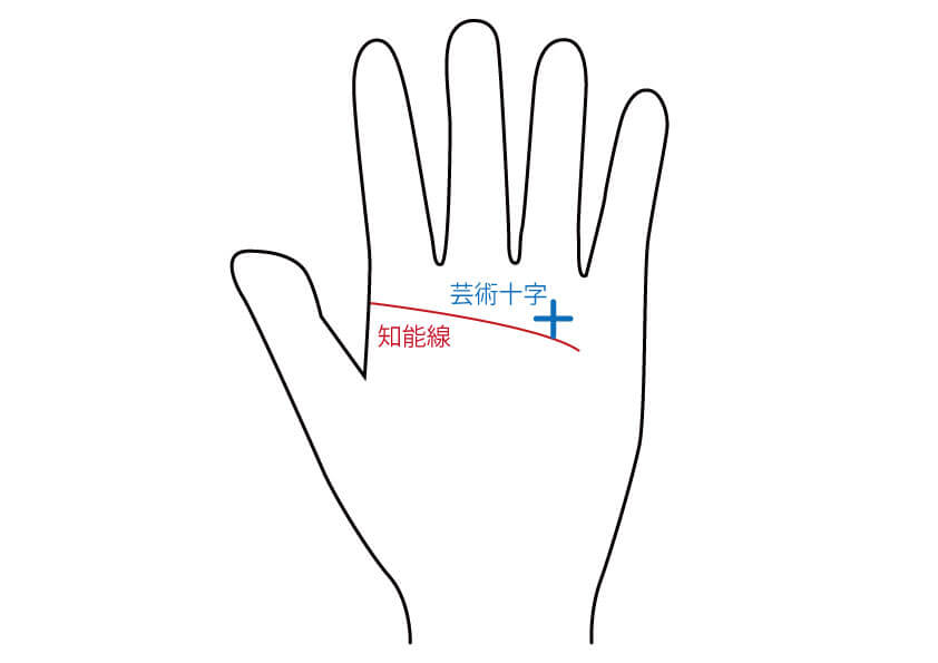 芸術十字は、知能線の枝線と、太陽線が交差して十字になった線です。