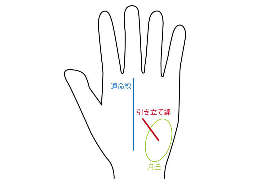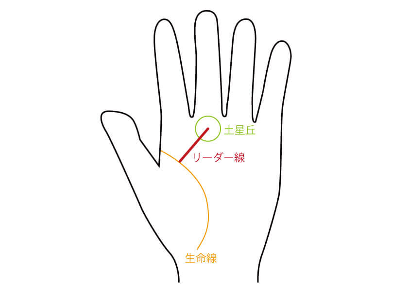 水星丘は、小指の付け根のふくらみのことです。土台線は、「人」という字のように、二股になることで元の線を支えているように見える線です。リーダー線は、生命線から出て、土星丘(中指の付け根のふくらみ)に伸びる線です。
