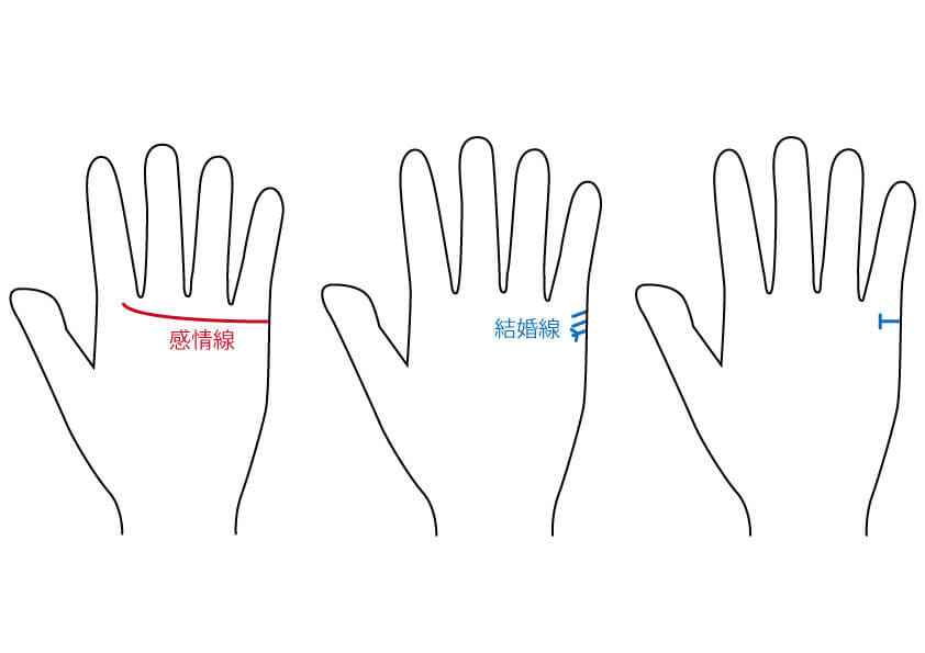 結婚線は、小指側の側面の、小指の付け根あたりから出る短線のことです。