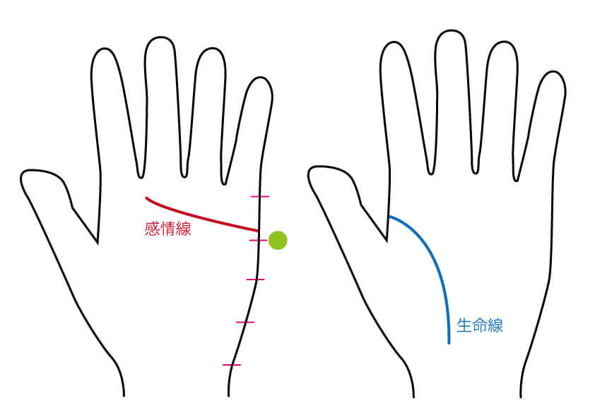 「感情線の始点が、標準よりも下にある」「生命線が小さくカーブする」という手相の方が、これに当てはまります。