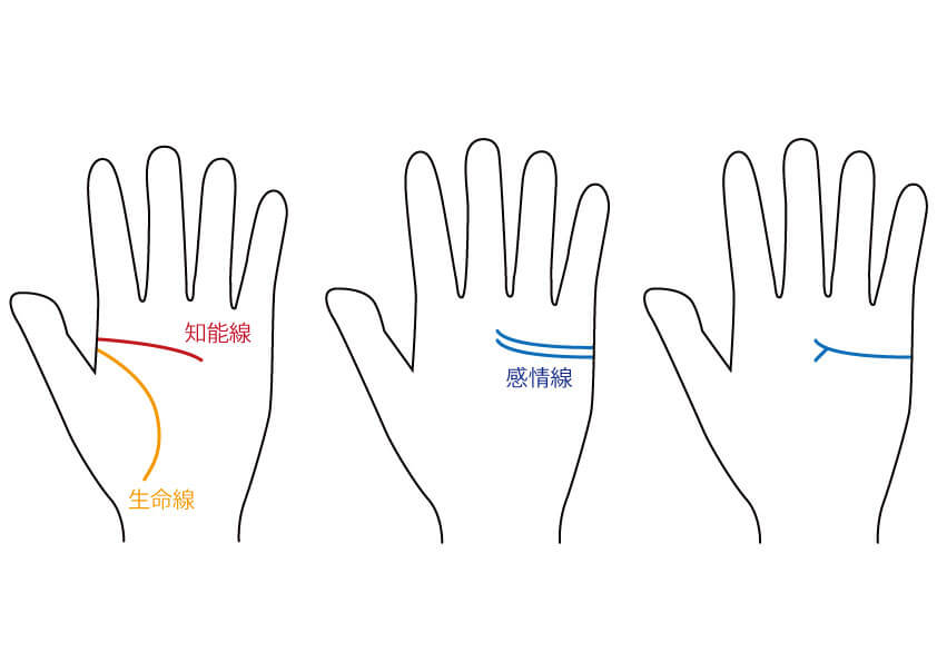 「知能線が、生命線よりも上の場所から出る」「感情線が2本ある」「感情線の末端が、大きく二股になっている」という手相の方が、これに当てはまります。