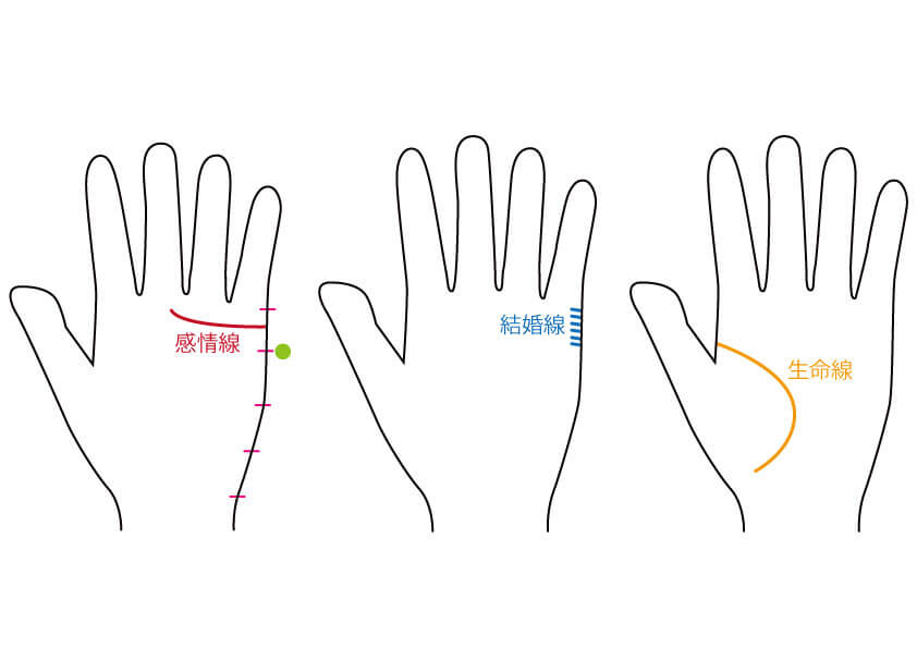「感情線の始点が、標準よりも上にある」「結婚線が、5~10本ある」「生命線が大きくカーブする」という手相の方が、これに当てはまります。