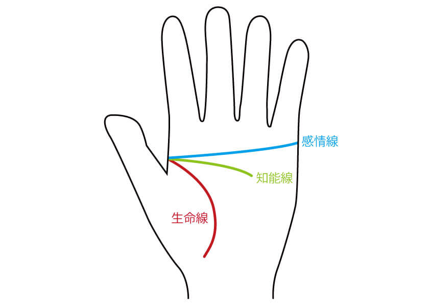 感情線と知能線と生命線の始点が、全て同じで、どの線も濃い
