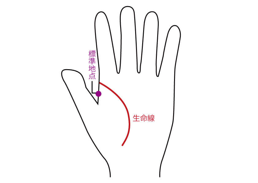 生命線の標準地点とは、親指と人差し指の中間の場所のことです。