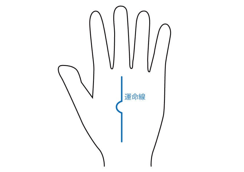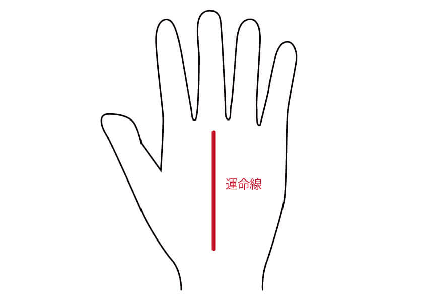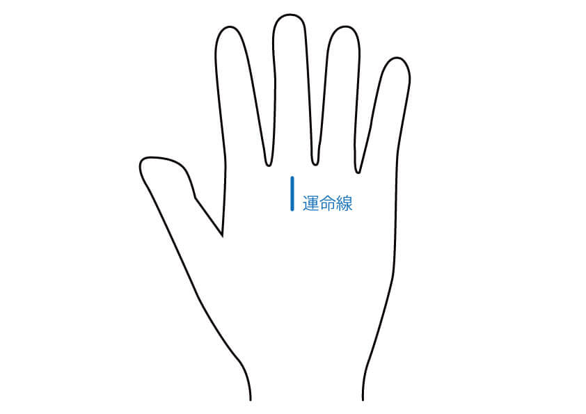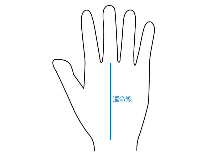 運命線とは、土星丘(中指の付け根のふくらみ)に向かう線のことです。