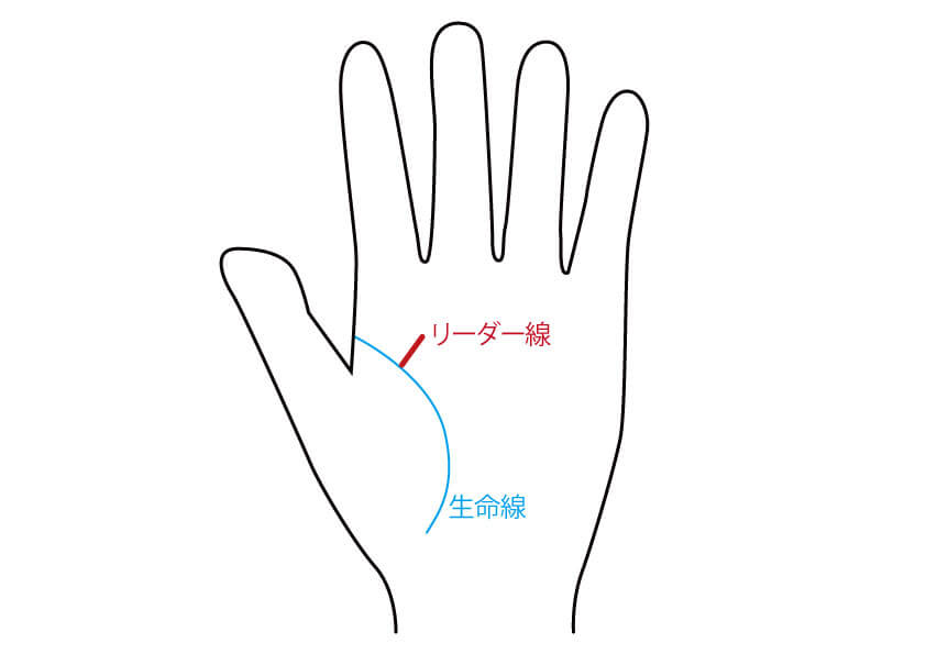 リーダー線とは、生命線付近から出て、中指に向かって伸びる線のことです。ななめになっていることが多いです。