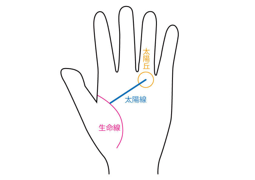 太陽線とは、太陽丘(薬指の付け根のふくらみ)に向かう線のことです。