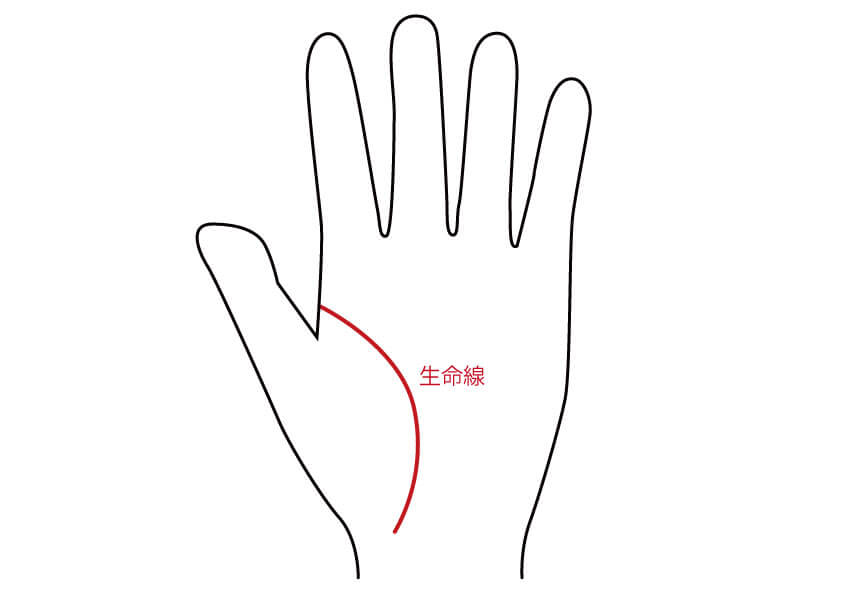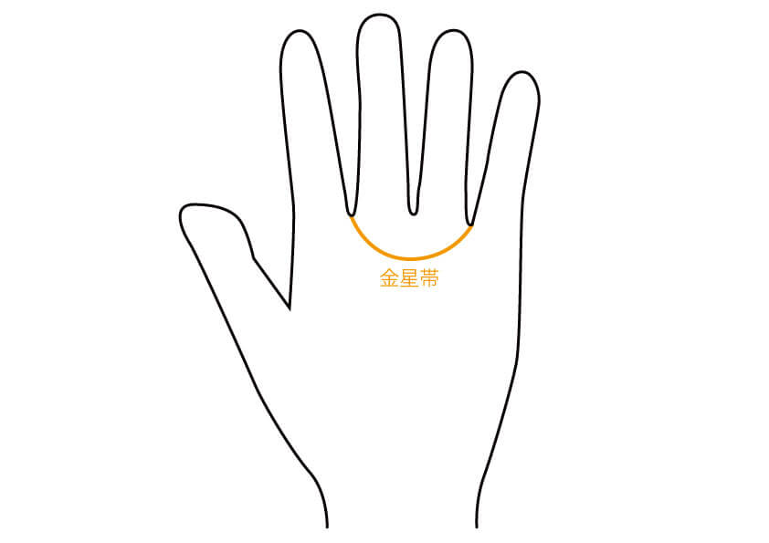 金星帯とは、始点が中指と人差し指の間にあり、終点が小指と薬指の間にある、半円状の線のことです。