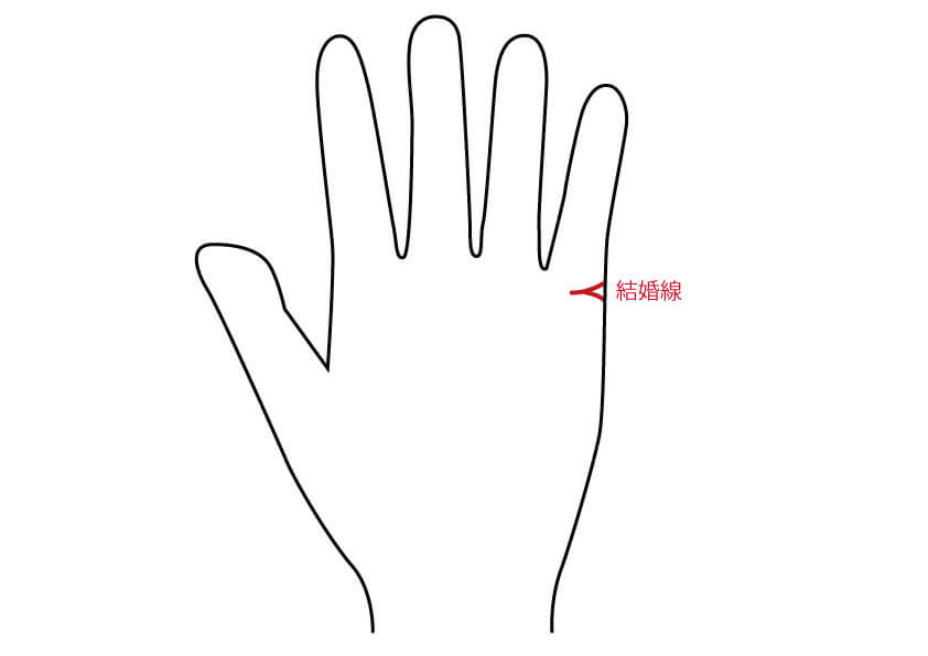 結婚線とは、水星丘(小指の付け根のふくらみ)に向かう線のことで、始点は小指の付け根から感情線の間にあることがほとんどです。