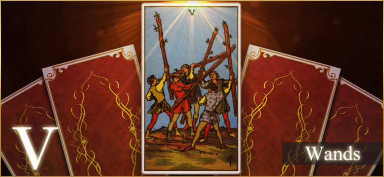 ワンドの5の正位置では「競争」「ライバル」「争い事」といった見てのとおりのキーワードとなります。