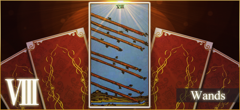 ワンドの8の正位置は棒の飛ぶ様子から「スピード」「チャンス到来」「次々繰り出す」「良い知らせ」といったキーワードとなります。