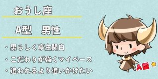 おうし座A型男性の性格、恋愛傾向、相性、今年の運勢は?