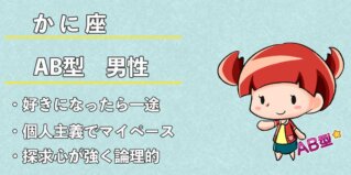 かに座AB型男性の性格、恋愛傾向、相性、今年の運勢は?